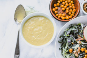 This salad dressing works well with many different lettuces. If you are using kale, make sure to dress the salad at least 30 minutes before serving it to allow the fibres to breakdown.